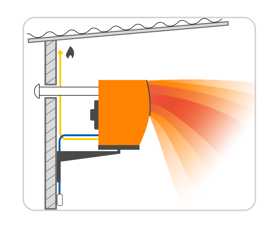 - Rychlé vytápění prostoru – během několika minut je v hale teplo